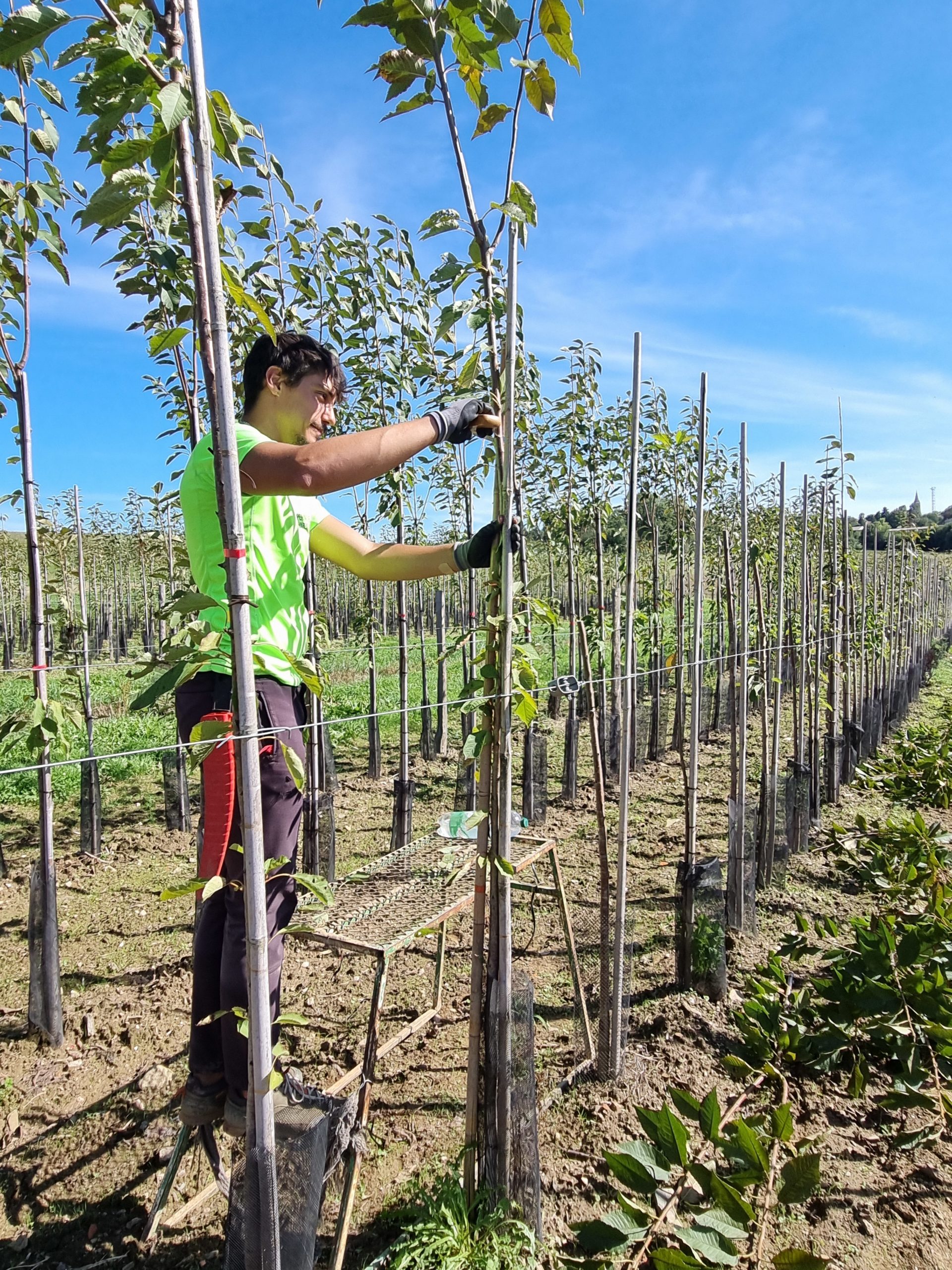 Étape 4 : croissance du plant greffé, qui peut prendre de 3 à 4 ans selon l’espèce pour atteindre la taille demandée par nos clients.
