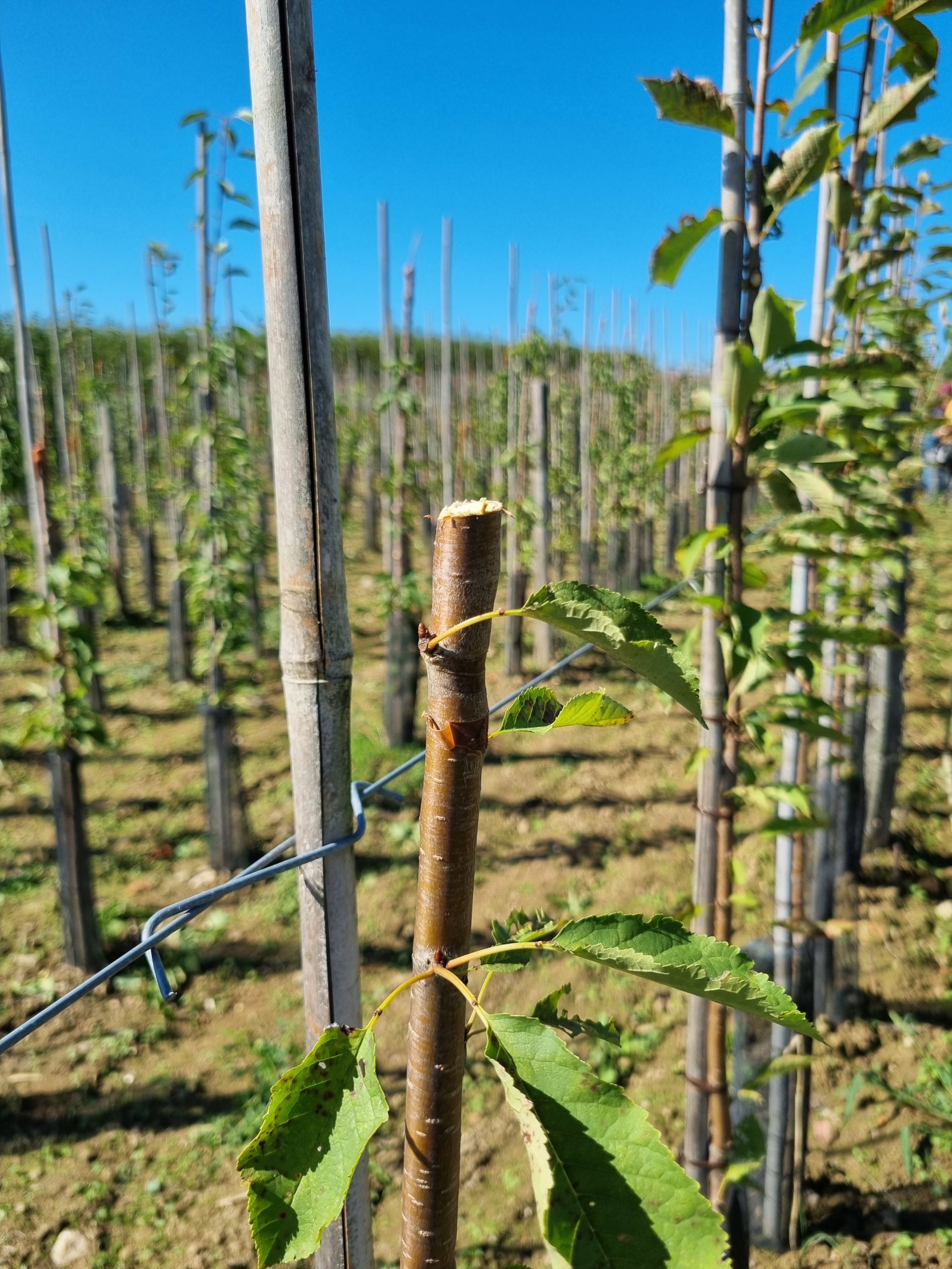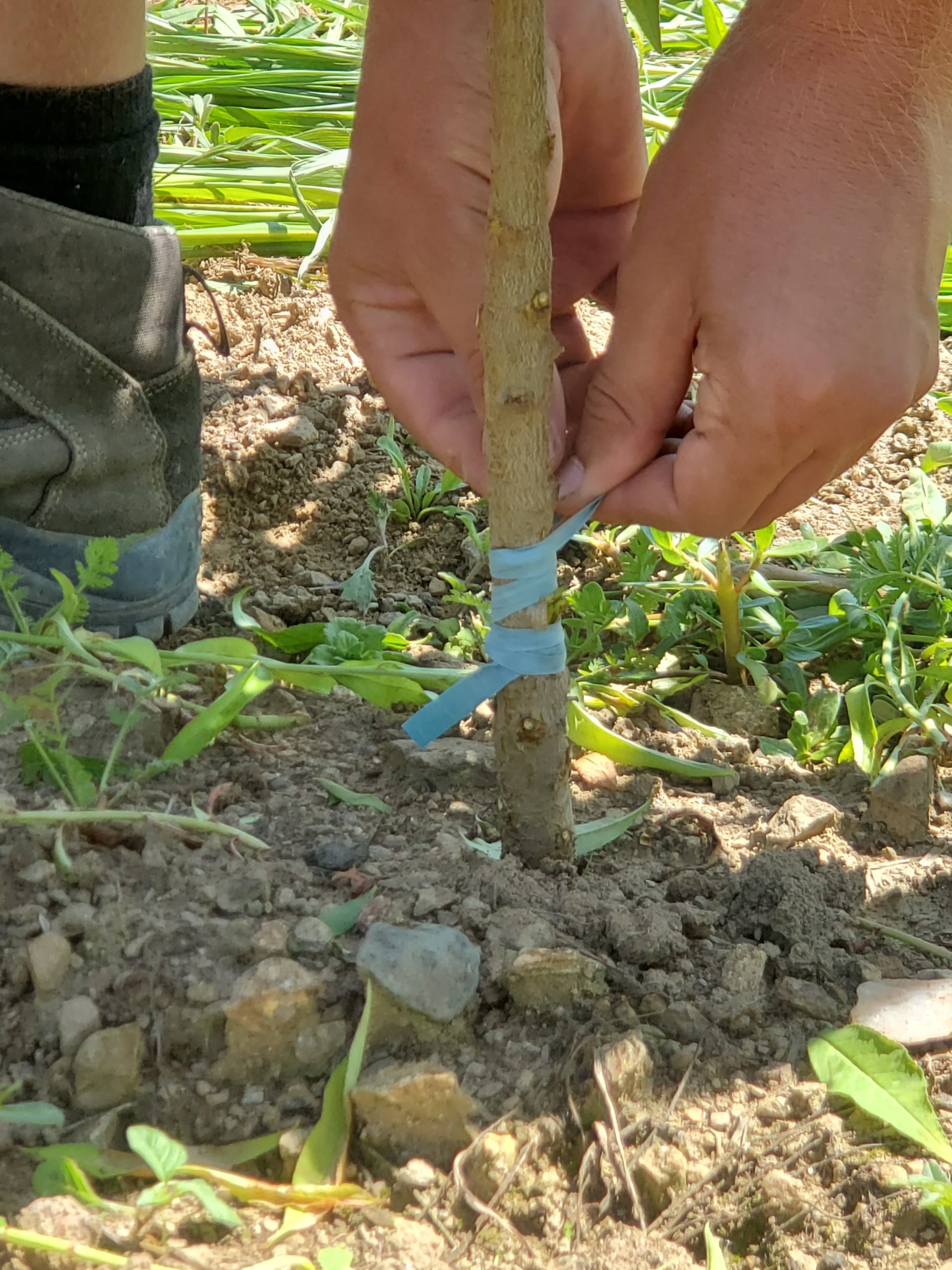 Étape 1 : plantation et entretien du porte-greffe, que l’on cultive pendant plusieurs mois afin qu’il atteigne la vigueur nécessaire.