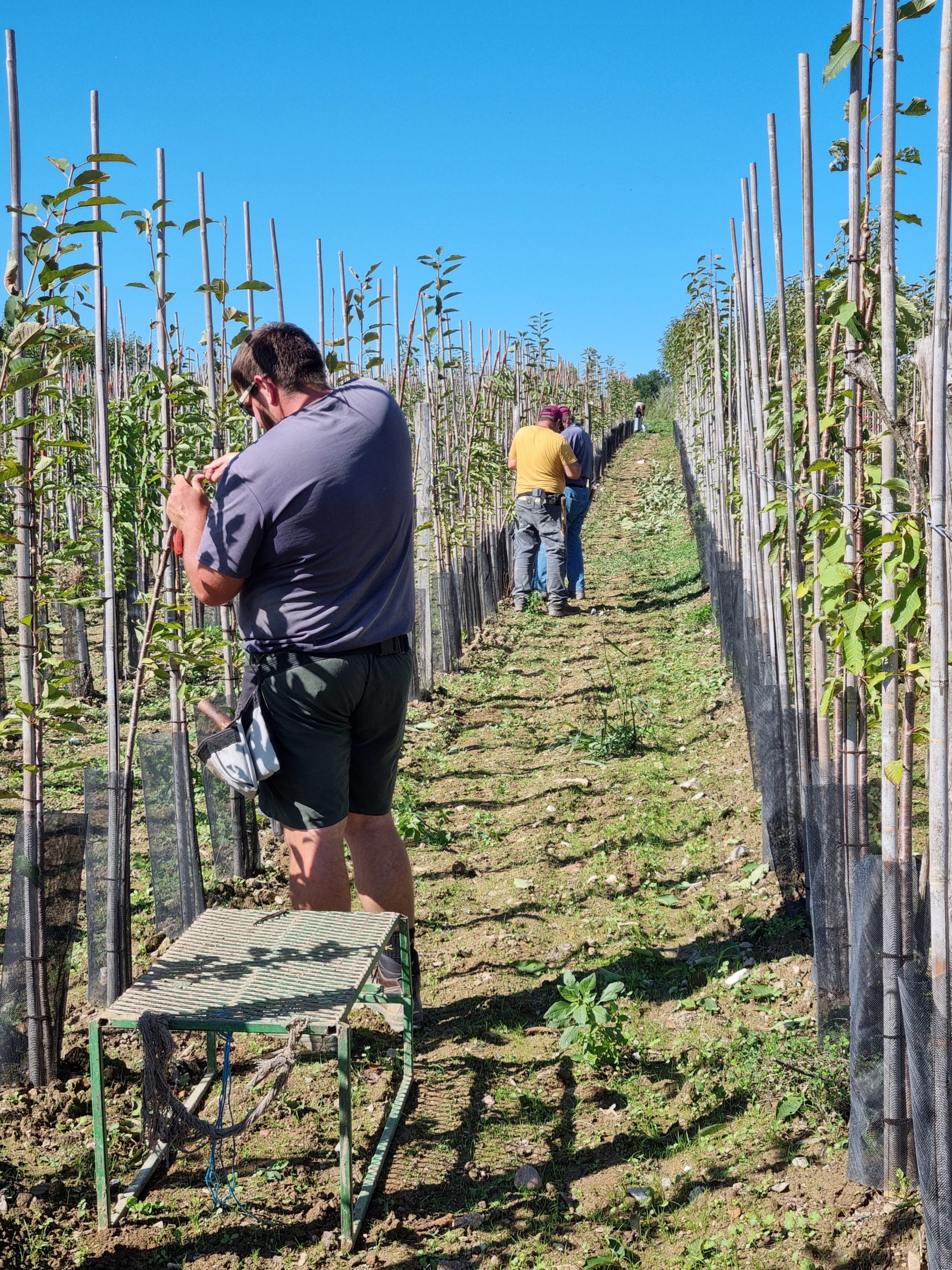 Nous greffons les arbres fruitiers tels que les pommiers, poiriers, pruniers, et d’autres encore. Cela permet de garantir la fidélité des variétés et de leur assurer une bonne adaptation aux sols de nos régions.